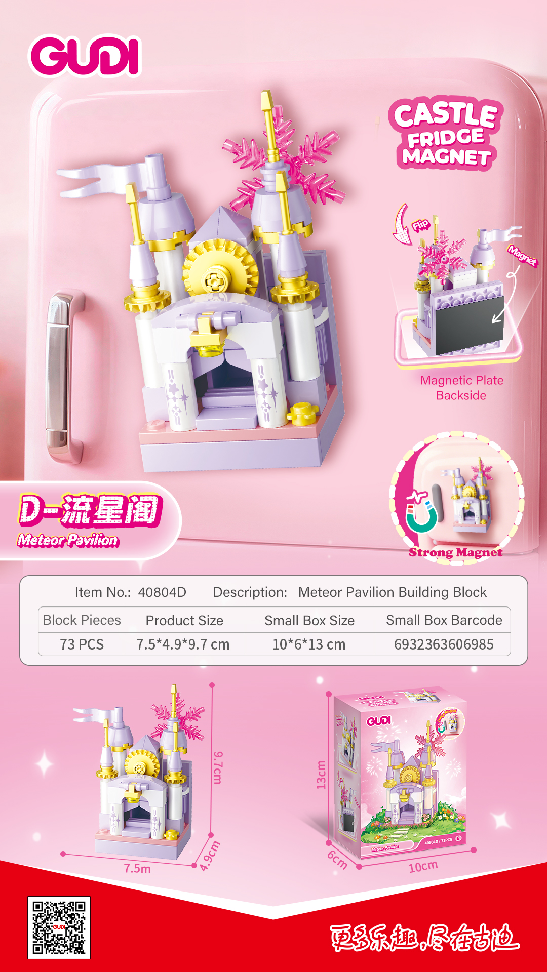 - Description:40804A: Star Wish Dream Tower-66PCS 40804B:The Sun Shines Brightly-66PCS 40804C: Sky Garden-77PCS 40804D:Meteor Pavilion-73PCS 40804E:Cloud Heart Hall-75PCS 40804F:Clear Sky Paradise-75PCS 40804G:Crystal Bell Tower-77PCS 40804H:Hall of Time-76PCS 40804I:Lingguang City-76PCS